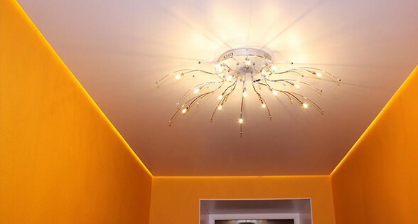 Их свет направлять можно самостоятельно. Шины крепиться могут к одноуровневому потолку, а могут быть утопленными. Но такой светильник быть может только черным или белым. Потому и цветовая гамма потолков весьма ограничена.